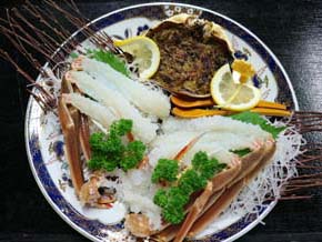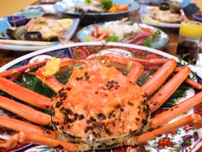 越前かにシーズン中は1泊2食付き宿泊プランと日帰りでのお食事プラン(昼食又は夕食)をご用意しております。 焼き刺しの付くプランは甲羅は焼きもしくは雑炊、足は焼き、刺身、天ぷら片足ずつの注文が出来ます。 ホームページを御覧のお客様に限ります。店主自ら競りで仕入れる極上の越前がにを是非ご堪能ください。越前がには全て熱々でお出ししております。